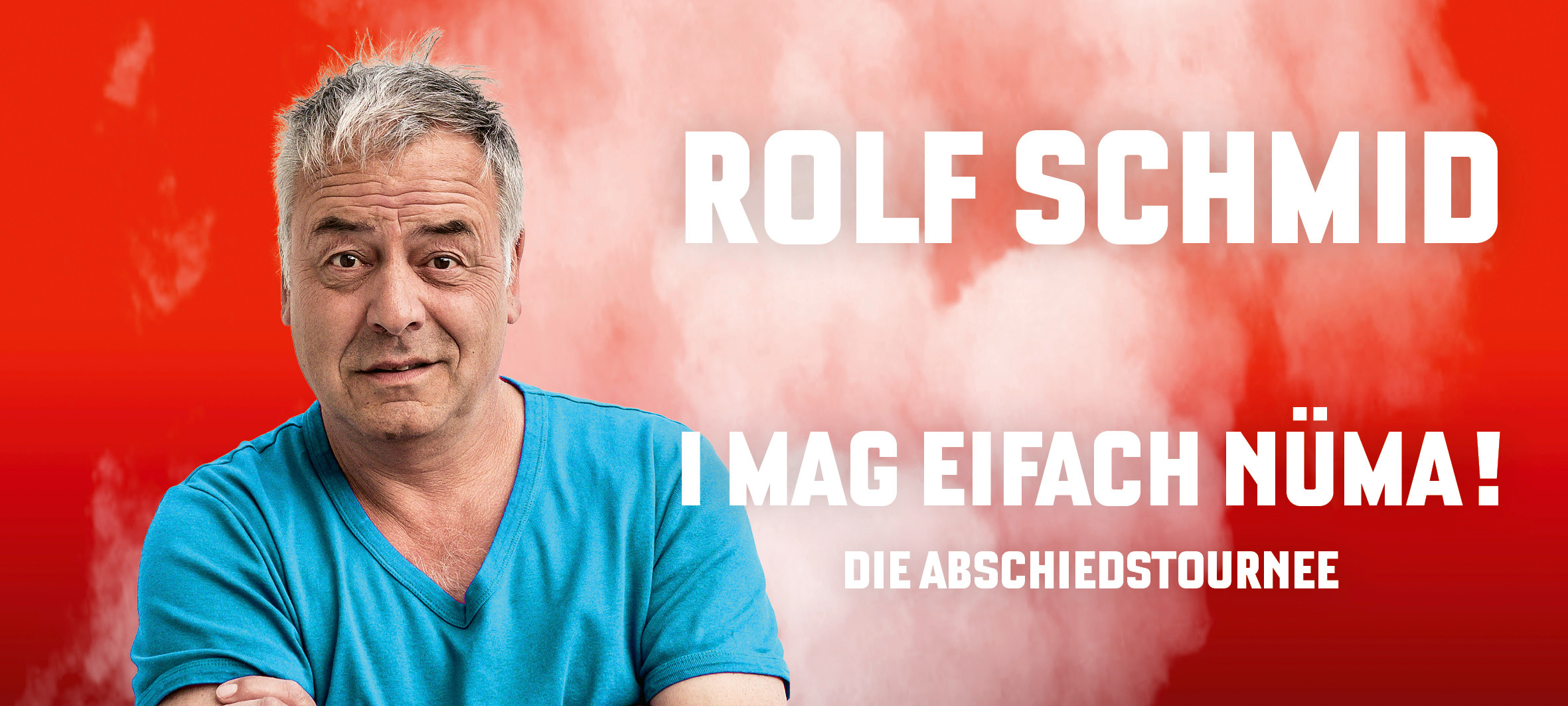 Mit seiner Abschiedstournee 2026 erfüllt Rolf Schmid sich und seinem Publikum den letzten grossen Traum: Noch einmal durchs Land ziehen, noch einmal alles geben, noch einmal die Leute zum Lachen bringen. «Danach freue ich mich, mehr Zeit mit meiner Familie, in der Natur und fürs Kochen zu haben», meint Rolf Schmid. «I mag einfach nüma» heisst sein Schlusspunkt. Eine unterhaltsame Mischung aus Rückblick, Vorschau und Chaos. Also Rolf Schmid wie man ihn kennt respektive kannte. Rolf Schmid: «Es ist für mich eine Ehre, meinem treuen Publikum nochmals richtig die Lachmuskeln zu strapazieren».